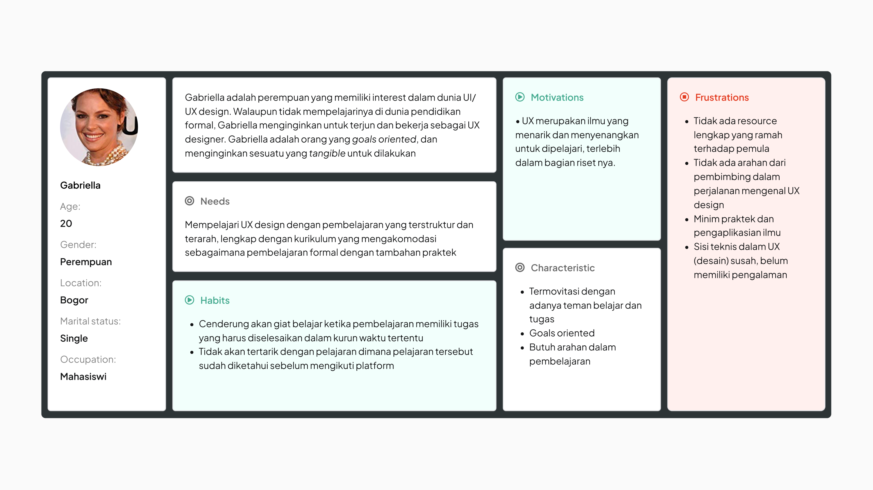 Based on initial assumptions and hypotheses, the project targets individuals who want to learn UX Design—both beginners exploring the field for the first time and learners with prior experience who wish to deepen their skills.