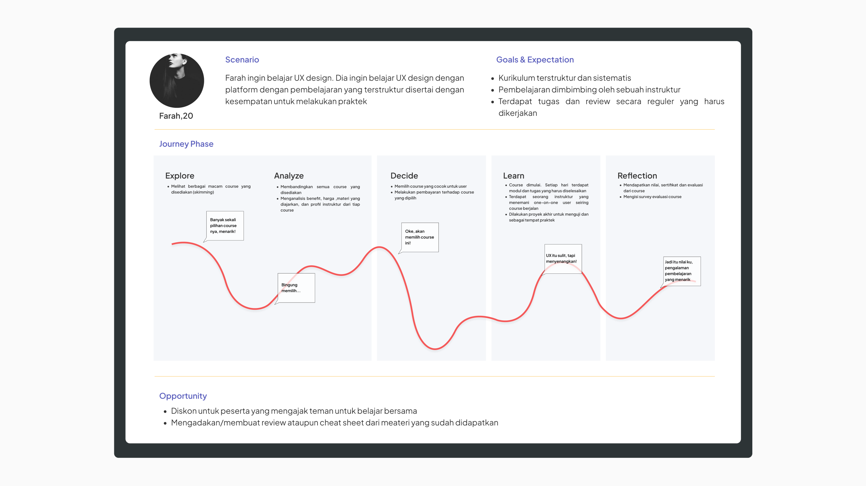 A user persona was created to represent the key characteristics, needs, motivations, and frustrations of our target users. This persona became the foundation for defining the platform’s essential features and guided the development of the prototype.